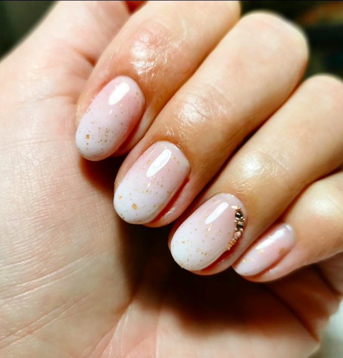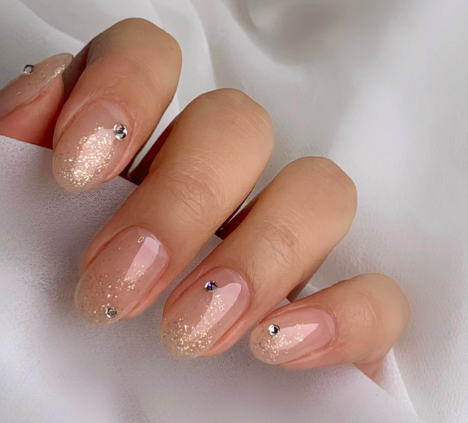 Glitter nails never go out of fashion. They’re classy and go well with every occasion or even fine for a casual look. You can get an ombre glitter French tip on natural-colored nails and just attach one medium-sized rhinestone on the nail body.