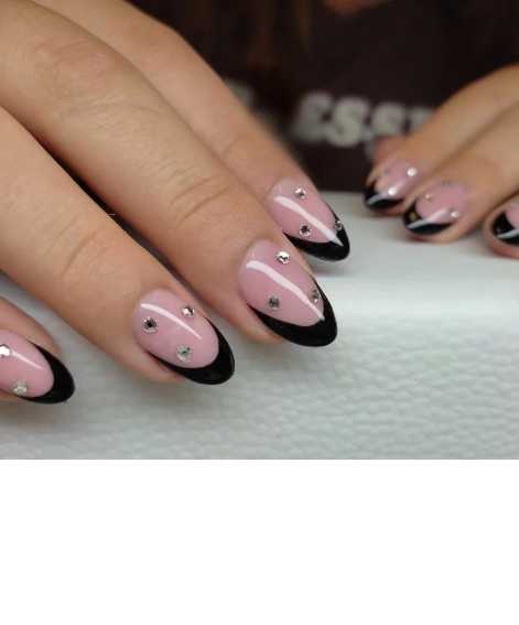 You can never go wrong with classic black and natural rhinestones look on your nails. This is pretty much similar to the white tips nail. All you do is get yourself black French tips and attach rhinestones in the empty nail area.