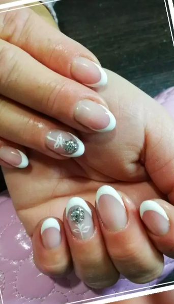Another white French tip nail that looks chic is with multiple and different rhinestones patterns. You have the complete freedom here on how you want to place your rhinestones for it to look awesome.