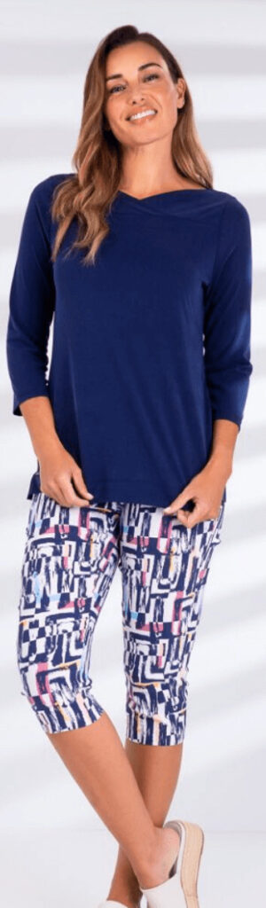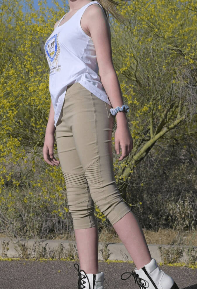 A good and really simple way to ensure this is by tucking your top or shirt into the waistband of your capri pants.