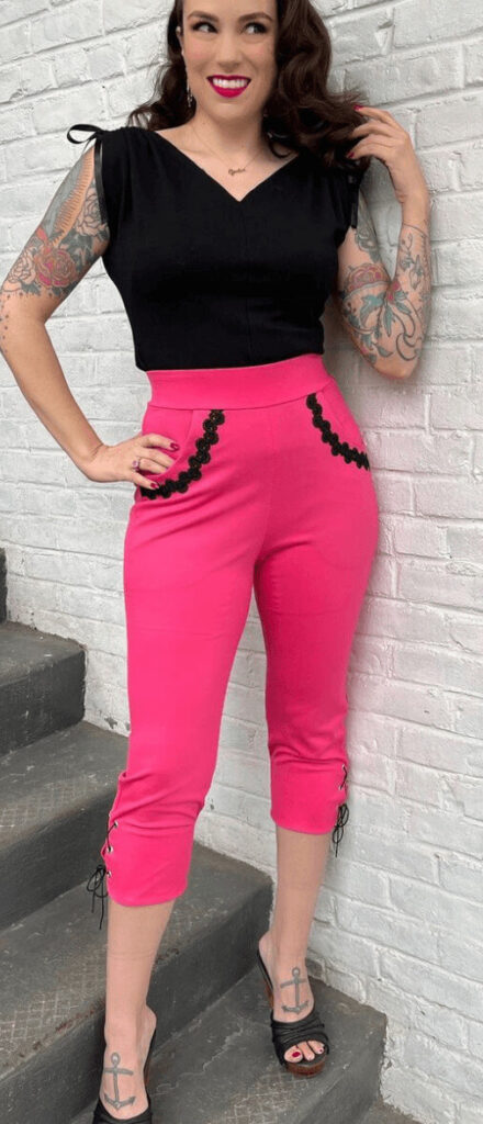 Capri pants were fad in the 2000s and the capri pants trend is back in full swing in 2022 as well. Capri pants did fade out for a little while but it’s definitely in style today!