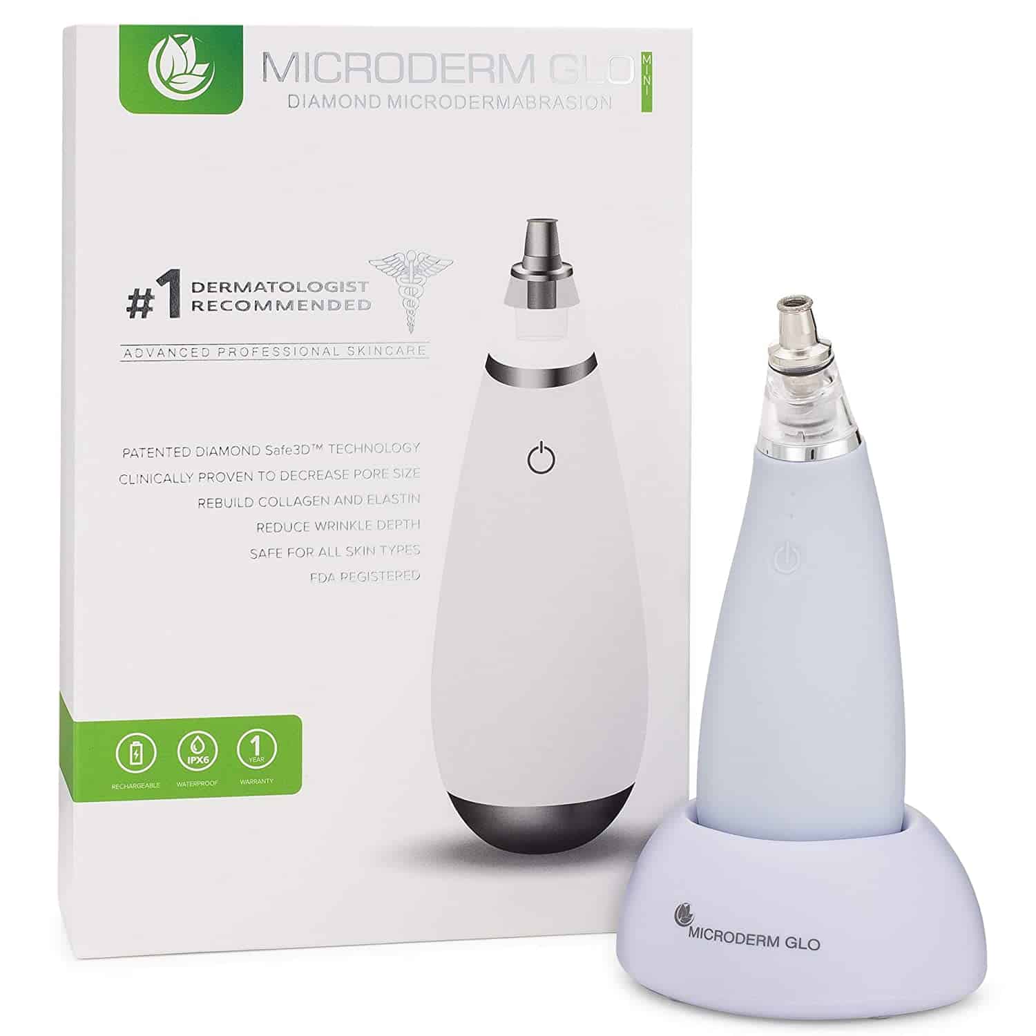 Microderm GLO is the only at-home microdermabrasion system that has a patented Diamond Safe 3D suction technology to make sure that it doesn’t damage your skin. Therefore, Microderm GLO Diamond Microdermabrasion Machine is safe and gentle enough for all skin types.
