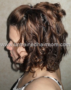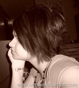 I liked this style, it was nice for a change, my hair is always worn straight. My hair is growing out from a very short hairstyle, (the stacked in the back, longer in the front style that I wore for years), and is in a somewhat awkward length state right now…but I am trying to grow it out. Here is a photo I dug up of my shorter style: