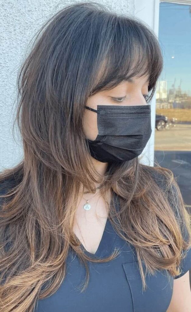 This beautiful hairstyle looks perfectly gorgeous on the girls having a beautiful length of hair. These amazing wispy layers look stunning with the awesome front fringes and showcase a lot of volume.