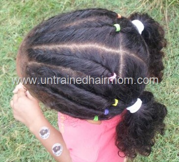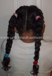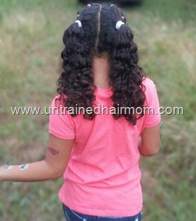 I wanted to take a break from the wash and go posts to show you all an easy style we did recently with flat twists or rolling twists as they are also called. Miss D wore this style for 5 days, 3 days with the 2 braids in the back and 2 days with the braid out. I used Bee Mine Curly Butter for the twists and CUSH Crème de Palm for the braid/braid out, I was curious to see how the CUSH would work for that.