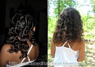 Once her hair was down and detangled I added some Moisturize Me, her hair wash so soft and shiny. D wanted to wear her hair down and curly, after all it had been in those little braids for 2 1/2 weeks. I let her wear down for a little bit and after it dried it looked so good, we had to have a photo shoot! ![]()