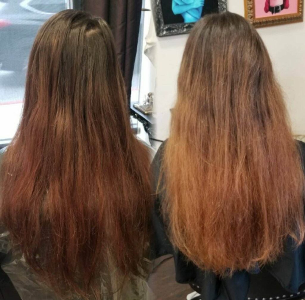 The product works by breaking down the artificial dye molecule, allowing you to go back to natural or just-colored hair and remove deep, dark colors.