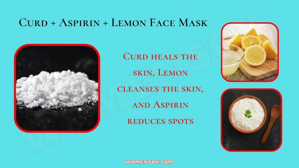 Curd is rich in healing properties. Lemon juice is a natural cleansing agent. When you mix these two ingredients with aspirin, you are assured with blemishes free skin.
