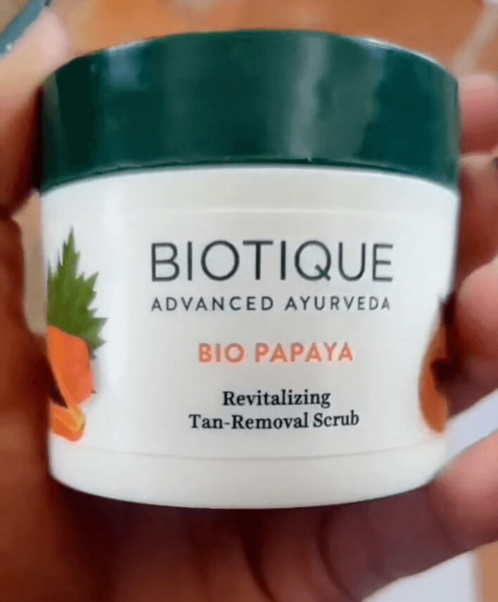 The Biotique PAPAYA Tan face scrub is formulated with three main ingredients – papaya, neem, and turmeric.